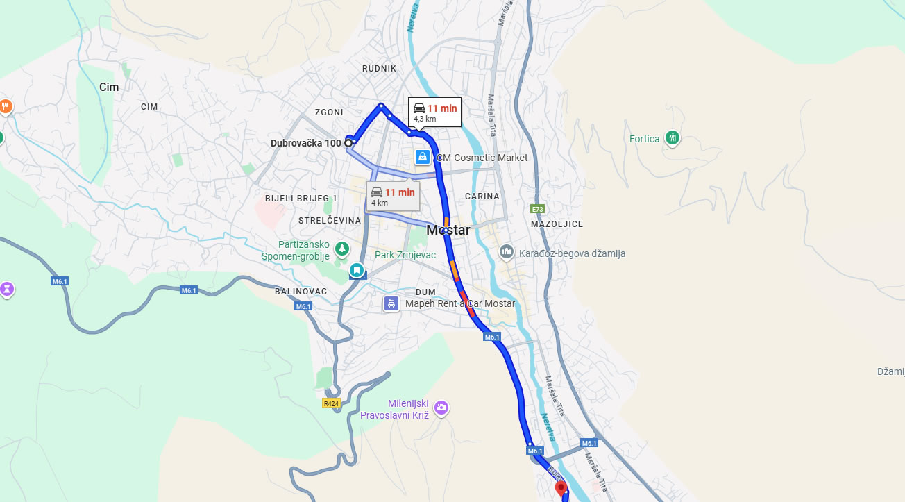 Potvrdu o udaljenosti možete dobiti u AMSuBiH-u na lokaciji Rodočkih branitelja 2/A.